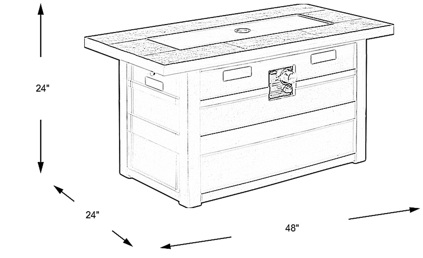 It's time to cozy up outside with the Aledo fire pit. The paneled style makes for a striking focal point and is great to gather with friends and family for outdoor time. This fire pit accommodates a standard propane tank with 50,000 BTU (not included) and is activated with a push-button igniter. An included lid can protect your fire pit when not in use.