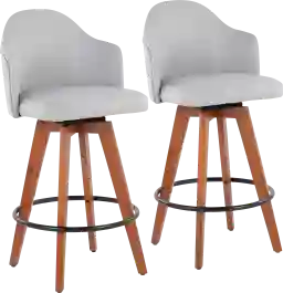 These stools are ideal for compact living spaces and urban floor plans. With a narrow width of 18.5 inches and a low-back profile, they provide a slim silhouette that fits easily in tight layouts without blocking sightlines. The tapered bamboo legs and light gray upholstery offer a clean, contemporary aesthetic that helps maintain an airy, open feel in smaller rooms.