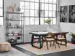 Inspired by the subtlety of mid-century design, the Alekai arm chair's sleek style and soft cushioned seat add subtle detail and comfort to your dining space. Made of a solid American walnut and finished with faux leather detailing, this chair will bring an ageless beauty to your space. Customer assembly is required.
