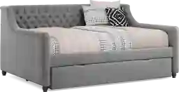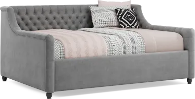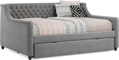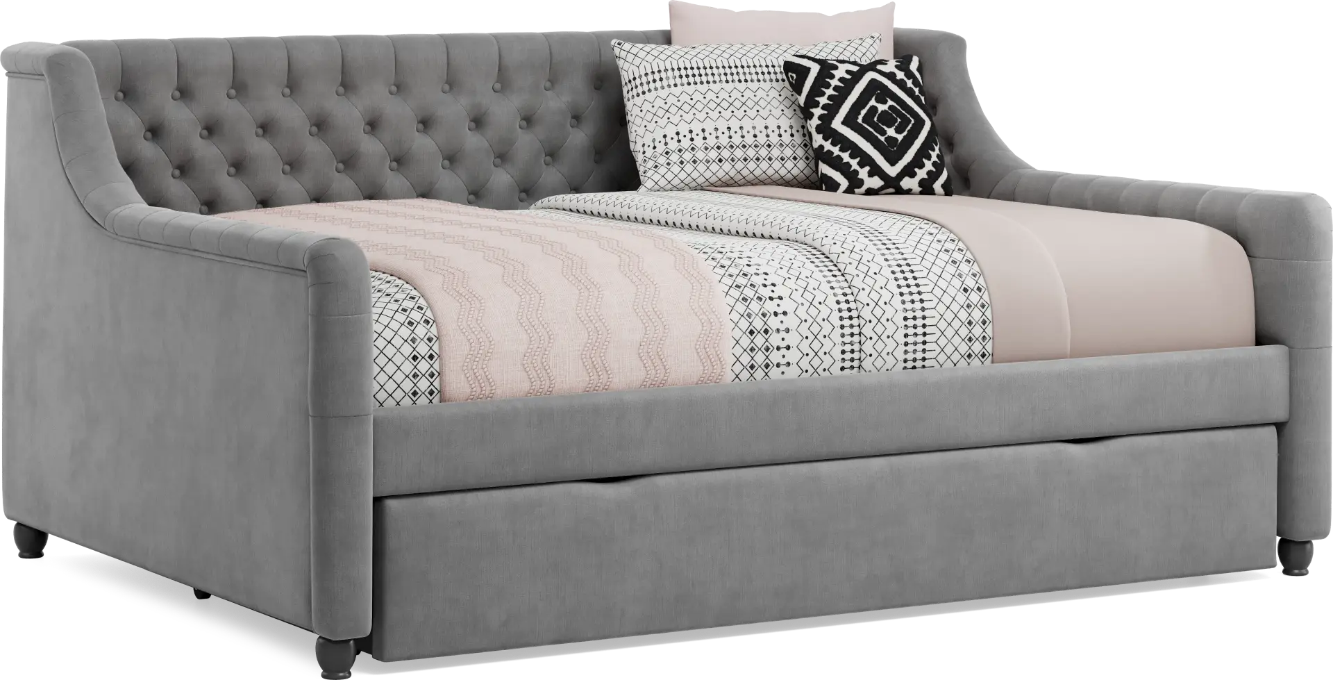 Give the guest room or your child's room the glam treatment! The ultra-chic, super versatile Alena daybed is a wonderful selection, whether you're looking for an extra seat or a bed for an overnight guest. Soft velvet upholstery in a stylish charcoal color is accented with stately tufting along the interior on both the inside back and sides. Gently rounded edges add plenty of panache, giving it a fashionably chic silhouette. The included underbed trundle is perfect for storing seasonal clothes, games, or even an extra mattress. Mattress and bedding not included.