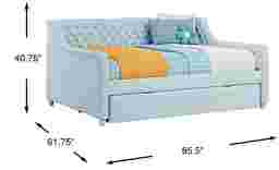 Give the guest room or your child's room the glam treatment! The ultra-chic, super versatile Alena daybed is a wonderful selection, whether you're looking for an extra seat or a bed for an overnight guest. Soft velvet upholstery in an beautiful light blue color is accented with stately tufting along the interior on both the inside back and sides. Gently rounded edges add plenty of panache, giving it a fashionably chic silhouette. The included underbed trundle is perfect for storing seasonal clothes, games, or even an extra mattress. Mattress and foundation (if required) sold separately.