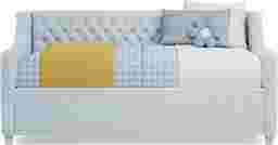 Give the guest room or your child's room the glam treatment! The ultra-chic, super versatile Alena daybed is a wonderful selection, whether you're looking for an extra seat or a bed for an overnight guest. Soft velvet upholstery in a beautiful light blue color is accented with stately tufting along the interior on both the inside back and sides. Gently rounded edges add plenty of panache, giving it a fashionably chic silhouette. Mattress and foundation (if required) sold separately.