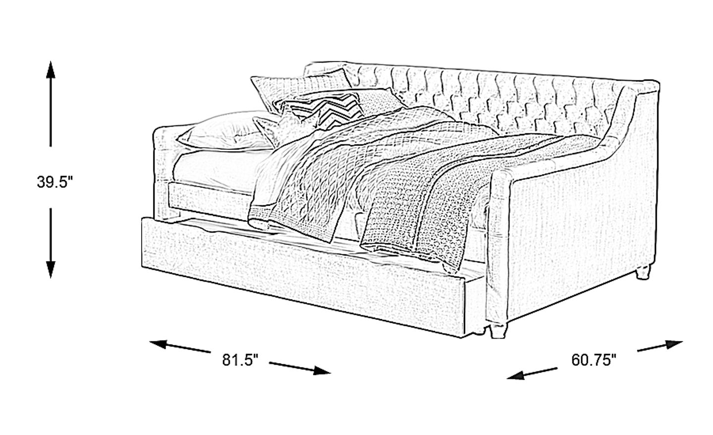 Give the guest room or your child's room the glam treatment! The ultra-chic, super versatile Alena daybed is a wonderful selection, whether you're looking for an extra seat or a bed for an overnight guest. Soft velvet upholstery in a sweet pink color is accented with stately tufting along the interior on both the inside back and sides. Gently rounded edges add plenty of panache, giving it a fashionably chic silhouette. The included underbed trundle is perfect for storing seasonal clothes, games, or even an extra mattress. Mattress and bedding not included. Daybed shown is twin size.
