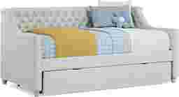 Give the guest room or your child's room the glam treatment! The ultra-chic, super versatile Alena daybed is a wonderful selection, whether you're looking for an extra seat or a bed for an overnight guest. Soft velvet upholstery in an elegant silver color is accented with stately tufting along the interior on both the inside back and sides. Gently rounded edges add plenty of panache, giving it a fashionably chic silhouette. The included underbed trundle is perfect for storing seasonal clothes, games, or even an extra mattress. Mattress and foundation (if required) sold separately. Bed shown is full size.