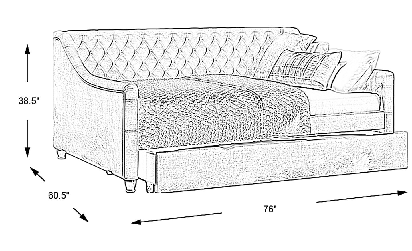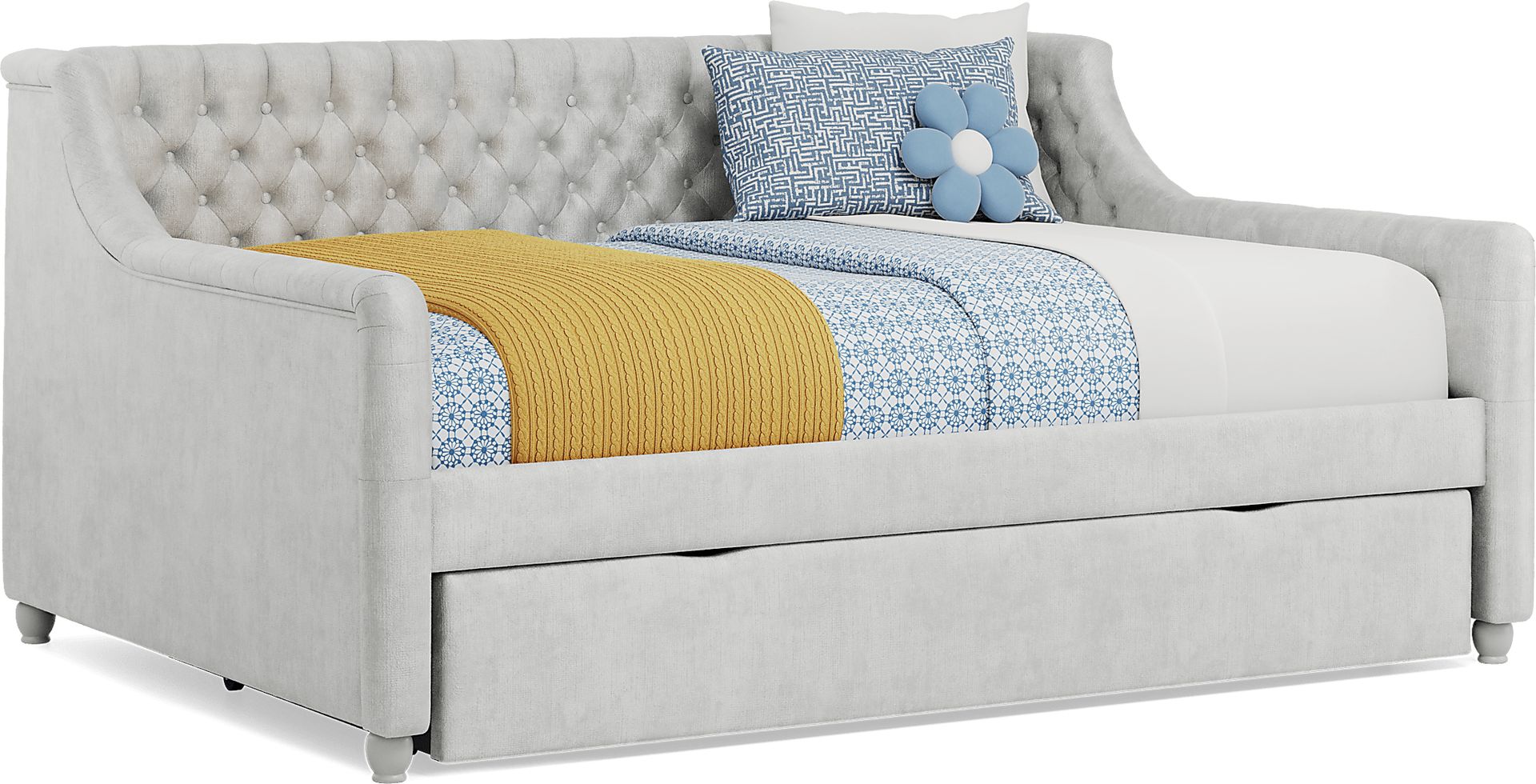 Give the guest room or your child's room the glam treatment! The ultra-chic, super versatile Alena daybed is a wonderful selection, whether you're looking for an extra seat or a bed for an overnight guest. Soft velvet upholstery in an elegant silver color is accented with stately tufting along the interior on both the inside back and sides. Gently rounded edges add plenty of panache, giving it a fashionably chic silhouette. The included underbed trundle is perfect for storing seasonal clothes, games, or even an extra mattress. Mattress and foundation (if required) sold separately.