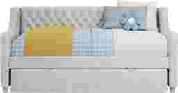 Give the guest room or your child's room the glam treatment! The ultra-chic, super versatile Alena daybed is a wonderful selection, whether you're looking for an extra seat or a bed for an overnight guest. Soft velvet upholstery in an elegant silver color is accented with stately tufting along the interior on both the inside back and sides. Gently rounded edges add plenty of panache, giving it a fashionably chic silhouette. The included underbed trundle is perfect for storing seasonal clothes, games, or even an extra mattress. Mattress and foundation (if required) sold separately. Bed shown is full size.