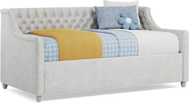 Give the guest room or your child's room the glam treatment! The ultra-chic, super versatile Alena daybed is a wonderful selection, whether you're looking for an extra seat or a bed for an overnight guest. Soft velvet upholstery in an elegant silver color is accented with stately tufting along the interior on both the inside back and sides. Gently rounded edges add plenty of panache, giving it a fashionably chic silhouette. Mattress and foundation (if required) sold separately. Bed shown is full size.