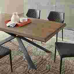 Contemporary with a rustic look, the Alessi table is versatile without compromising design. Featuring a brushed ash veneer top, this elegant pedestal table includes extending metal legs for a bold mix of materials.