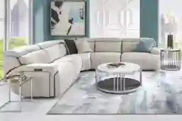An elegant and nuanced invocation of an evening in meditation overlooking the Manhattan skyline, the Alessio dual power recliner from Cindy Crawford Home has the quiet power of style and substance in its enchanting silhouette. A modern beauty, this sectional boasts light gray top grain leather where the body touches on in its single attached back and seat cushion and sophisticated track arms. Featuring dual power reclining including zero gravity capabilities for the utmost in relaxing Zen. Additional hidden storage is located on the outside of the arms and USB-A and USB-C charging capabilities add the final touch of modern convenience. Upholstery: Top grain leather where the body touches and polyurethane fabric sides and backs. Leather is a durable, low maintenance product, however, general regular maintenance is necessary. To keep your leather clean, vacuum it regularly, removing any dust, and clean it with water and a mild non-detergent soap.