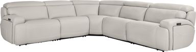 An elegant and nuanced invocation of an evening in meditation overlooking the Manhattan skyline, the Alessio dual power recliner from Cindy Crawford Home has the quiet power of style and substance in its enchanting silhouette. A modern beauty, this sectional boasts light gray top grain leather where the body touches on in its single attached back and seat cushion and sophisticated track arms. Featuring dual power reclining including zero gravity capabilities for the utmost in relaxing Zen. Additional hidden storage is located on the outside of the arms and USB-A and USB-C charging capabilities add the final touch of modern convenience. Upholstery: Top grain leather where the body touches and polyurethane fabric sides and backs. Leather is a durable, low maintenance product, however, general regular maintenance is necessary. To keep your leather clean, vacuum it regularly, removing any dust, and clean it with water and a mild non-detergent soap.