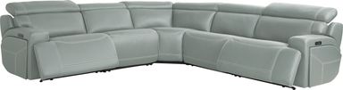 An elegant and nuanced invocation of an evening in meditation overlooking the Manhattan skyline, the Alessio dual power recliner from Cindy Crawford Home has the quiet power of style and substance in its enchanting silhouette. A modern beauty, this sectional boasts mint top grain leather where the body touches on in its single attached back and seat cushion and sophisticated track arms. Featuring dual power reclining including zero gravity capabilities for the utmost in relaxing Zen. Additional hidden storage is located on the outside of the arms and USB-A and USB-C charging capabilities add the final touch of modern convenience. Upholstery: Top grain leather where the body touches and polyurethane fabric sides and backs. Leather is a durable, low maintenance product, however, general regular maintenance is necessary. To keep your leather clean, vacuum it regularly, removing any dust, and clean it with water and a mild non-detergent soap.