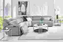 An elegant and nuanced invocation of an evening in meditation overlooking the Manhattan skyline, the Alessio dual power recliner from Cindy Crawford Home has the quiet power of style and substance in its enchanting silhouette. A modern beauty, this sectional boasts mint top grain leather where the body touches on in its single attached back and seat cushion and sophisticated track arms. Featuring dual power reclining including zero gravity capabilities for the utmost in relaxing Zen. Additional hidden storage is located on the outside of the arms and USB-A and USB-C charging capabilities add the final touch of modern convenience. Upholstery: Top grain leather where the body touches and polyurethane fabric sides and backs. Leather is a durable, low maintenance product, however, general regular maintenance is necessary. To keep your leather clean, vacuum it regularly, removing any dust, and clean it with water and a mild non-detergent soap.