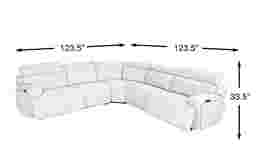 An elegant and nuanced invocation of an evening in meditation overlooking the Manhattan skyline, the Alessio dual power recliner has the quiet power of style and substance in its enchanting silhouette. A modern beauty, this sectional boasts white top grain leather where the body touches on in its single attached back and seat cushion and sophisticated track arms. Featuring dual power reclining including zero gravity capabilities for the utmost in relaxing Zen. Additional hidden storage is located on the outside of the arms and USB-A and USB-C charging capabilities add the final touch of modern convenience. Upholstery: Top grain leather where the body touches and polyurethane fabric sides and backs.