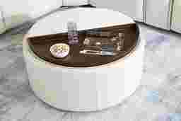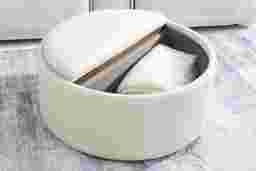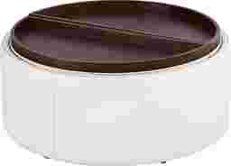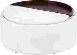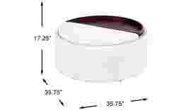 An elegant and nuanced invocation of an evening in meditation overlooking the Manhattan skyline, the Alessio storage ottoman from Cindy Crawford Home has the quiet power of style and substance in its enchanting silhouette. A modern beauty, this piece boasts white top grain leather where the body touches for a perfect place to rest your feet or sit and talk with your delighted guests. Plenty of storage to keep blankets, pillows and other relaxation essentials close at hand make this the perfect complement to your living room collection. Top grain leather where the body touches and polyurethane fabric sides and backs.