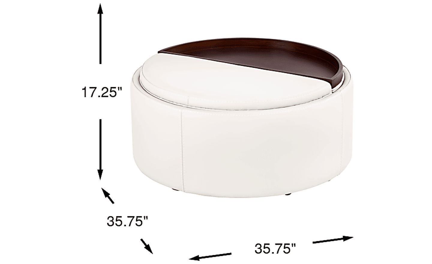 An elegant and nuanced invocation of an evening in meditation overlooking the Manhattan skyline, the Alessio storage ottoman from Cindy Crawford Home has the quiet power of style and substance in its enchanting silhouette. A modern beauty, this piece boasts white top grain leather where the body touches for a perfect place to rest your feet or sit and talk with your delighted guests. Plenty of storage to keep blankets, pillows and other relaxation essentials close at hand make this the perfect complement to your living room collection. Top grain leather where the body touches and polyurethane fabric sides and backs.
