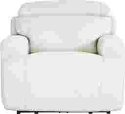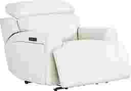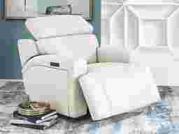 An elegant and nuanced invocation of an evening in meditation overlooking the Manhattan skyline, the Alessio dual power recliner from Cindy Crawford Home has the quiet power of style and substance in its enchanting silhouette. A modern beauty, this piece boasts white top grain leather where the body touches on in its single attached back and seat cushion and sophisticated track arms. Featuring dual power reclining with a zero gravity mechanism for the utmost in relaxing Zen, USB-A and USB-C charging capabilities add the final touch of modern convenience. Top grain leather where the body touches and polyurethane fabric sides and backs.