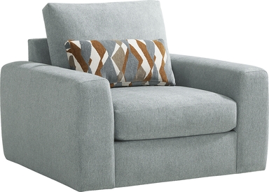 A deep exhale, the noise fades, and calm settles in with the Alexander collection's graceful structure and soothing tones, bringing ease and beauty to the heart of your home. Contemporary in style, this sectional is upholstered in lake blue chenille for a clean versatile look. Subtle curves and sleek track arms add a refined charm, while pillowy deep seating offers cloud-like relaxation. Coordinating kidney and accent pillows showcase geometric motifs in complementing shades of brown and blue, making a bold yet balanced statement. LAF loveseat, corner wedge, RAF loveseat. Upholstery: 100% polyester. Cleaning Instructions: Use water-based cleaning agents or foam.