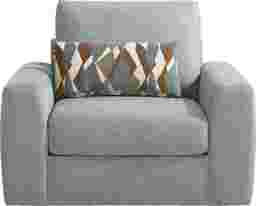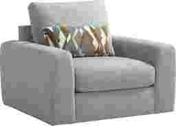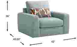 A deep exhale, the noise fades, and calm settles in with the Alexander collection's graceful structure and soothing tones, bringing ease and beauty to the heart of your home. Contemporary in style, this chair is upholstered in lake blue chenille for a clean, versatile look. Subtle curves and sleek track arms add a refined charm, while pillowy deep seating offers cloud-like relaxation. The swivel base brings 360-degree motion, so you can effortlessly stay in conversation from any angle. A coordinating kidney pillow showcases a geometric motif in complementing shades of brown and blue, making a bold yet balanced statement. Upholstery: 100% polyester.