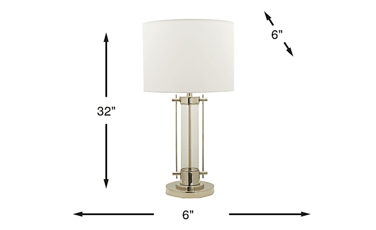 Simple lines and a sleek silhouette make the Alexios lamp a work of art that works seamlessly in both contemporary and traditional homes. Made of clear acrylic and metal, it's topped with an ivory drum shade. A 3-way switch accommodates a maximum 100 watt bulb (not included).