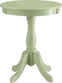 The Alger green accent table exemplifies the sought after shabby chic look. Elegantly designed with a traditional round top, shapely turned base and, four stylized knee legs. This light green table will go well with any style decor. Some customer assembly required.