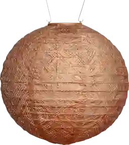 The Aliana Copper Outdoor Solar Lantern is inspired by ornately detailed lanterns found in Mediterranean bazaars. This lantern is bold, beautiful, and sophisticated. It is created from ultra-durable and weather resistant material and punched with an intricate diamond pattern. This lantern illuminates at dusk to cast captivating patterns of light each night. This solar lantern is equipped with one AAA rechargeable battery, solar panel, dual white LED lights, and stainless-steel hardware. Designed for year-round use outdoors. Customer assembly required.