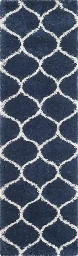 Inspired by traditional Moroccan tiles, the Alicia rug adds a stylish touch to any interior space with its ivory pattern against a navy background. Hand tufted with 100% polyester, impress your guests with this highly durable, incredibly soft deep pile shag rug. To clean, vacuum regularly or have it professionally clean.