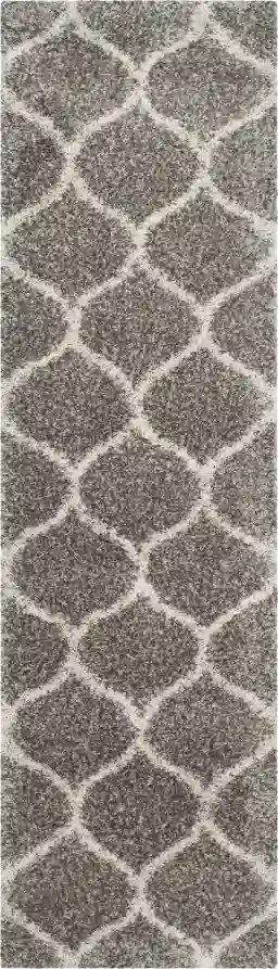 Inspired by traditional Moroccan tiles, the Alicia rug adds a stylish touch to any interior space with its ivory pattern against a gray background. Hand tufted with 100% polyester, impress your guests with this highly durable, incredibly soft deep pile shag rug. To clean, vacuum regularly or have it professionally clean.