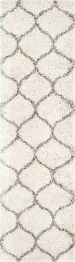 Absolutely. Utilizing a light-colored rug, such as this ivory and gray Moroccan design, is a proven interior design strategy to open up confined spaces. Light tones reflect more ambient light, which can brighten dark, windowless hallways common in urban apartments. The 2'3" width is specifically tailored for narrower floorplans, providing comfort and style without overwhelming the limited square footage.