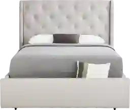 Composed and confident, the Alison II bed brings comforting textures and contemporary design elements together to infuse your sleep space with an air of relaxed refinement. Soft and smooth fabric in light gray traces every inch of the wingback headboard, punctuated with elegant button tufting in a diamond pattern. The matching footboard offers a sleek surface only broken by the outline of the storage drawer set into the front. Mattress and foundation (if required) sold separately. Bed shown is queen size.