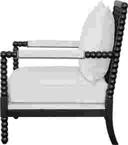 The arms, legs and back of the Alkison accent chair has a beautifully turned beaded design which gleam in a rich brown finish. The contrasting pale fabric of the plush seat, removable pillow back, and matching arm pads all combine in a striking blend of light and dark, a winning combination to brighten any decor. Customer assembly is required.