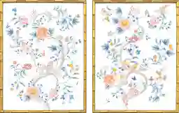 All The Flowers is a set two traditional giclees with a floral motif are framed to the image in an antique gold finish wood with bamboo pattern embossing. Customer assembly is required.
