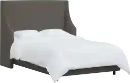 The wingback headboard is a hallmark of transitional design, seamlessly blending the structured formality of traditional furniture with the clean, bold lines of contemporary style. The square-top profile and dark gray upholstery provide a sophisticated neutral anchor, making it simple to coordinate with a wide range of bedroom decor, from minimalist modern aesthetics to more classic, ornate accents.