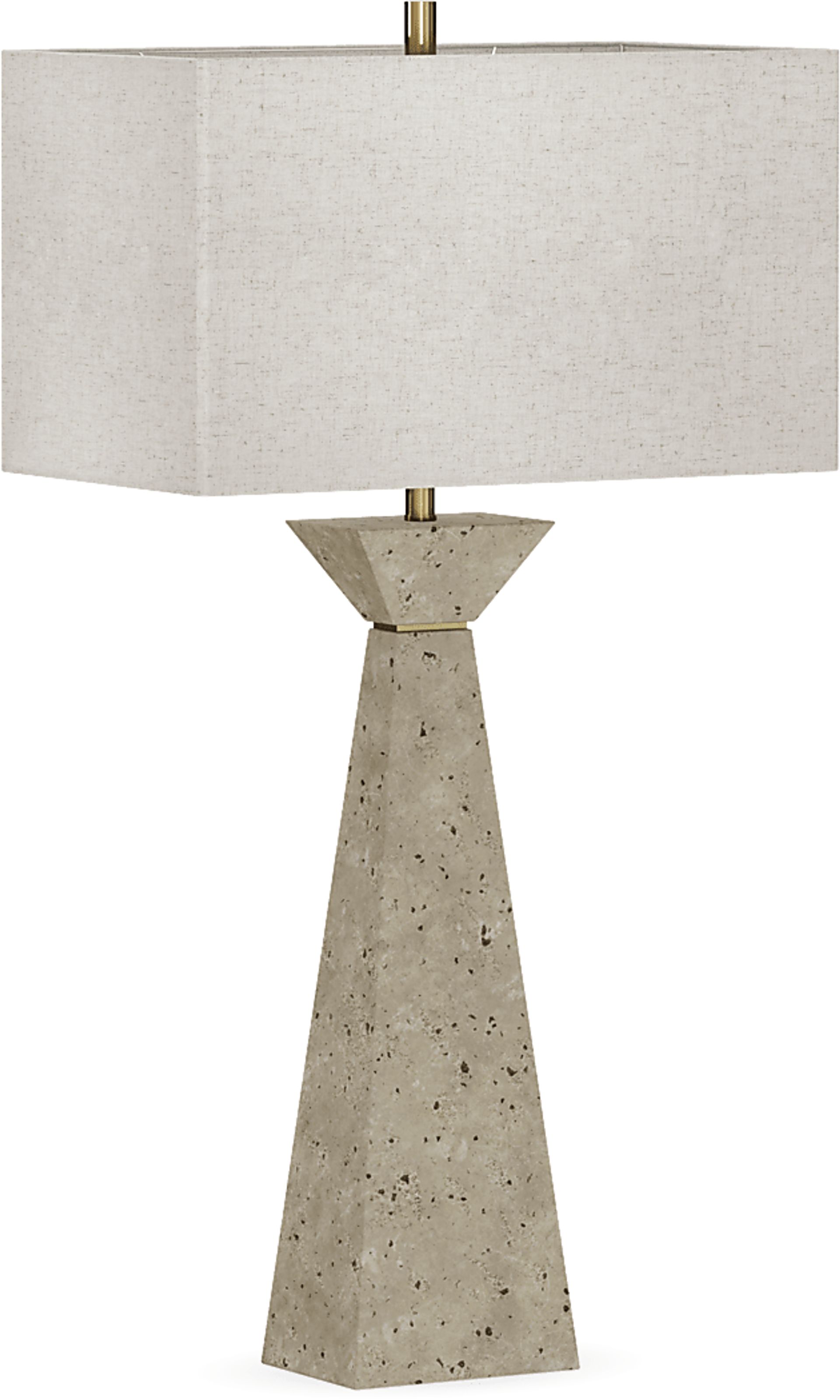 Uniquely styled for a look that is at once familiar and altogether unique, the Allenby Point lamp has a base shaped like a pyramid and is topped with a rectangular cream-colored shade. Perfect for adding an iconic modern look to any room or office. Operated by a three-way rotary switch, this lamp has a 100-watt bulb capacity.