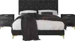 The Allengrove bedroom set has a high-quality fabric upholstered on the bed and solid nightstands. Clean styling with diamond shape button tufted. Customer assembly is required.