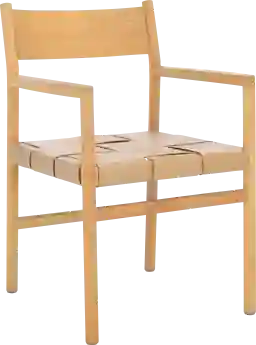 This Allercam natural/tan arm chair brings modern luxury to your dining space with its sleek natural finish and beautifully woven top grain leather. Crafted from solid Sungkay wood for lasting durability, its unique texture and elegant silhouette offer both comfort and style. Customer assembly required.