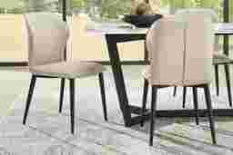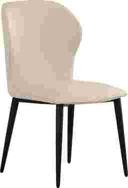 The room shifts from everyday living to special occasion effortlessly with the Allici collection's polished contrasts and elevated design. Contemporary in style, this side chair is fully upholstered in a beige hue and features a sleek wingback. Slender tapered legs in a black finish keep the profile light and airy.