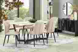 Allici White 5 Pc Dining Room with Beige Upholstered Chairs