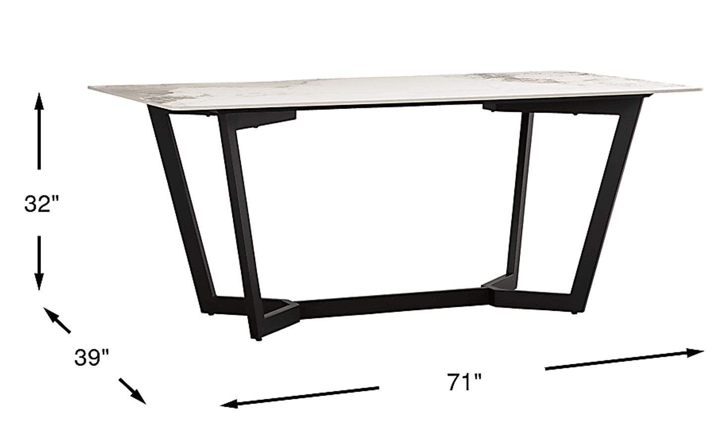 The room shifts from everyday living to special occasion effortlessly with the Allici collection's polished contrasts and elevated design. Contemporary in style, this rectangular dining table features a white stone top with subtle marbling and a bold black metal base for an architectural, grounded silhouette.