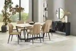 This table is an excellent choice for urban living because of its "polished contrast" design. The bright white stone top reflects light, which helps to open up a room and prevent a space from feeling cramped. While it provides a full-sized dining experience, the thin profile of the black metal base maintains a sense of "visual lightness," ensuring the piece anchors the room without overwhelming it.