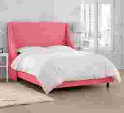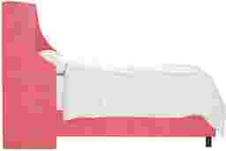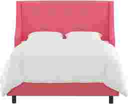 The Allyena square top bed features a strong curved wingback design alongside a plain front. These elements blend perfectly to lend a touch of style and create a piece that will be the center of your bedroom design. The made to order headboard matches up easily with the included metal frame and hand upholstered rails making assembly simple. An inclusive transitional design makes it an easy addition to any bedroom space. The bed is manufactured in Illinois and highlights a beautiful classic linen fabric. Customer assembly is required. This piece is made to order and may take up to 6 weeks to deliver.