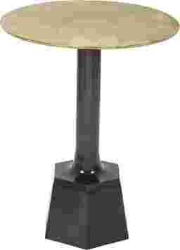 Add a unique modern touch to any decor with the Almadn accent table. The bronze table top sits upon a black geometric base. Customer assembly is required.