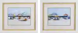 The Almagordo is a set of two coastal images that are double matted and finished under glass, with double stacked frames. Frames are natural wood and white in color. Customer assembly is required.