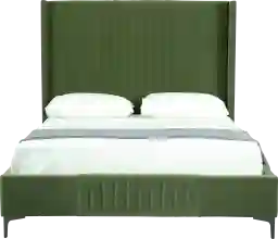 The Almendra green queen bed anchors your bedroom in glam, mid-century-inspired style. It's built with an engineered wood frame and features understated side rails and footboard for a clean-lined silhouette. The headboard is upholstered in a luxurious velvet that features vertical stitching accents. Plus, it's filled with foam for some extra cushion behind your head. Stylish tapered legs support the bed with a retro aesthetic. This bed arrives with slats and a center support leg, so you don't have to use a box spring with your choice of mattress. Customer assembly is required.