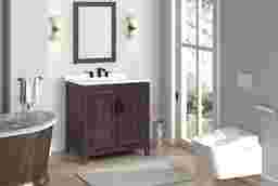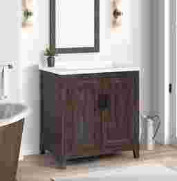The 31 inch Almone single vanity sink is the perfect solution to enhance your bathroom. The set includes a vanity base, vanity top and sink all you have to worry about is picking out a faucet compatible with an 8 spread. An integrated sink is built into a durable countertop for a smooth, clean look. Charming black antique hardware and a unique finish makes it easy to fit any aesthetic. Two cupboards open to give you ample room to store your toiletries and extra towels. Best of all, our vanities are so easy to put together, it won't feel like an overwhelming project. Customer assembly is required.