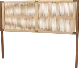 Bring a sense of exotic poise to your bedroom with the stunning Alphada light brown queen headboard. This bohemian inspired piece consists of a sturdy wood frame embellished with woven rope webbing. Its broad, rectangular silhouette creates a classic display while the intricate webbing interlaid within the frame adds a striking yet serene touch. The Alphada features a versatile design that can be either wall-mounted or bed frame mounted with an adapter to ensure stability. With eight unique height customization options, the Alphada transforms the feel of any bedroom. Customer assembly is required.