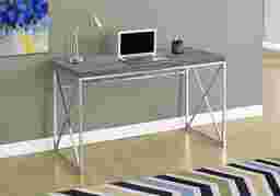 This desk features a sturdy chrome metal base with an X-frame leg design, which is specifically utilized to enhance structural stability and prevent wobbling. This durable construction ensures a steady workspace that can reliably support a laptop, desktop computer, or secondary monitors along with your daily work essentials.