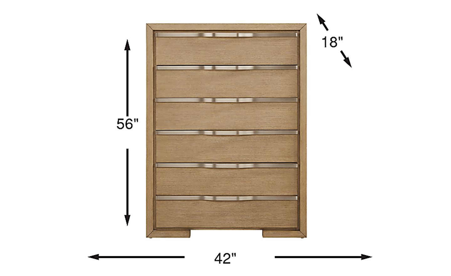 This chest is designed to maximize vertical storage, making it an efficient alternative to a wider dresser. It features six spacious drawers organized in a tall, 56-inch frame. This "tallboy" configuration allows you to store a significant volume of clothing or linens while occupying a compact footprint of just 42 inches in width, which is ideal for preserving floor space in your bedroom.