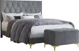 Bring luxe style to your bedroom or guest room with this low profile Alresford bed. It's made of engineered wood with bracket front legs in a brushed gold-tone finish. This bed features a foam-padded headboard and footboard and velvet upholstery. The headboard has a wingback style. Button tufting on the headboard and footboard offers a sophisticated look. This bed frame is compatible with an adjustable bed. It has center legs that provide additional support. Customer assembly is required.