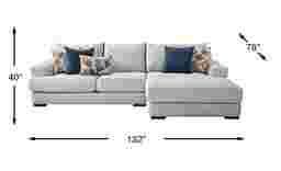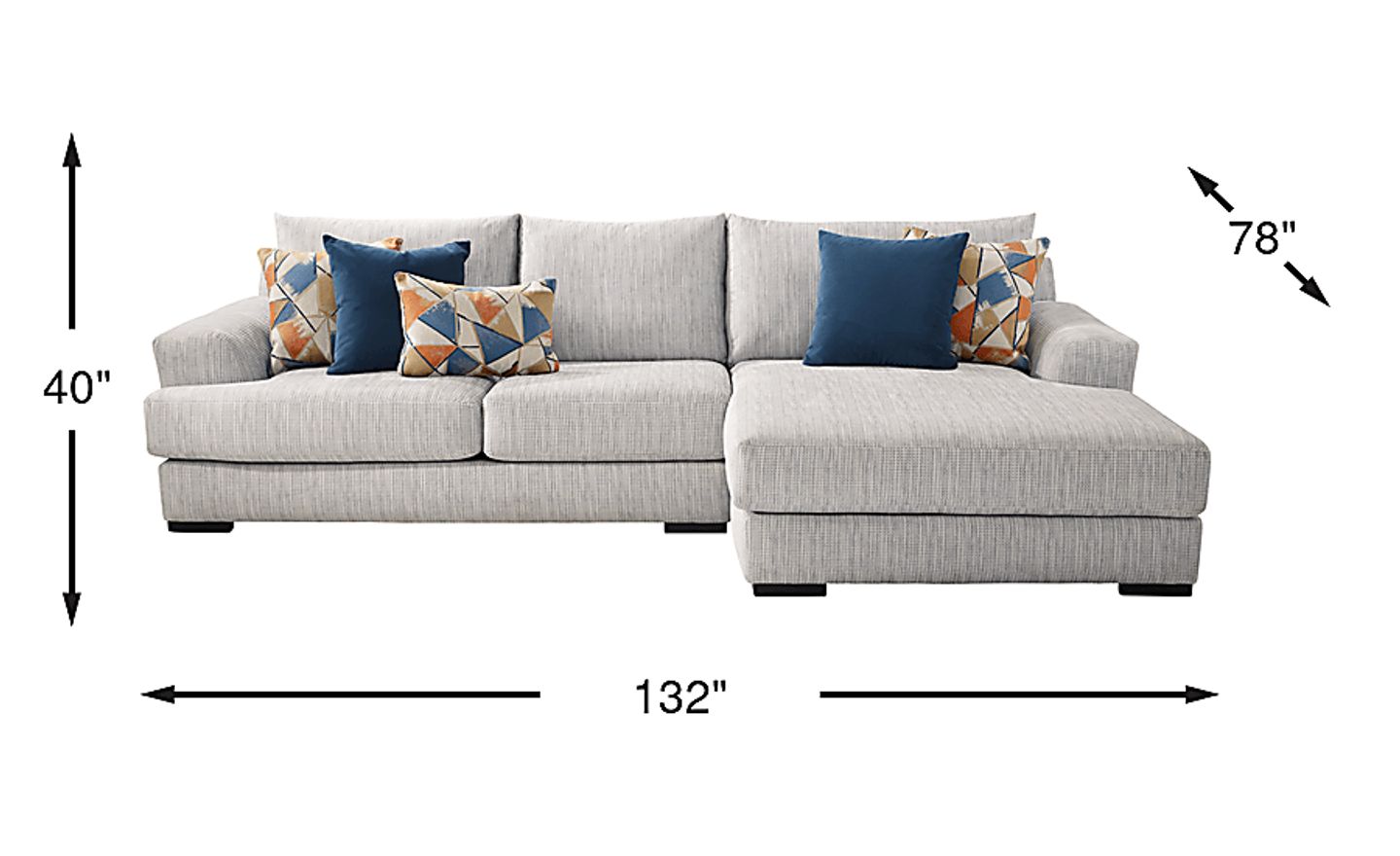 Invite luxury into your home with the Altona Hills sectional. Casual and contemporary, this piece boasts woven chenille fabric and adds ultra comfort to any space. With large padded arms and an oversized chaise, Altona Hills pairs surplus seating and style. Reversible seat cushions promise long-lasting use as built-in straps ensure seat security. Low wedge arms and channeled seat backs add a modern touch. Plush Feather Blend pillows complete the look, adding vibrant hints of blue and orange geometric shapes against the silver tone. Upholstery: 100% POLYESTER.