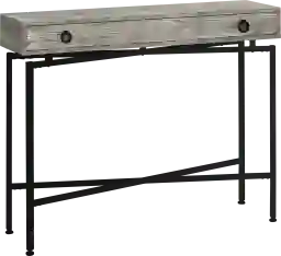 Add a touch of contemporary styling to your home with this gray reclaimed wood-look Altondale console table. Ideal for entryways, hallways or anywhere you would like to showcase your favorite accent pieces, this table will blend seamlessly with any decor. Featuring a sturdy black metal base and a chic brown reclaimed wood-look top with a large storage drawer, this fashion-forward piece will provide years of lasting enjoyment. Customer assembly is required.